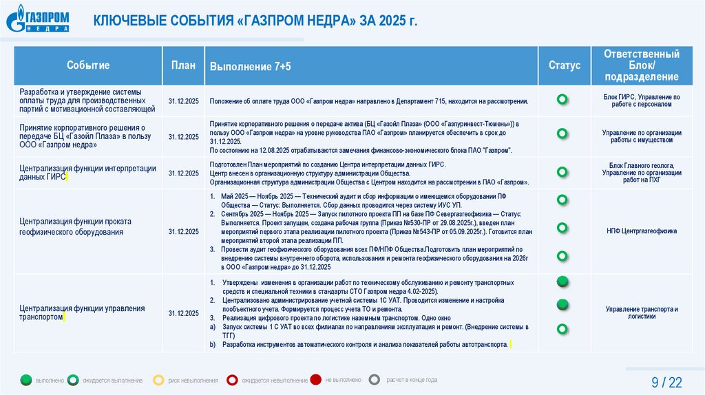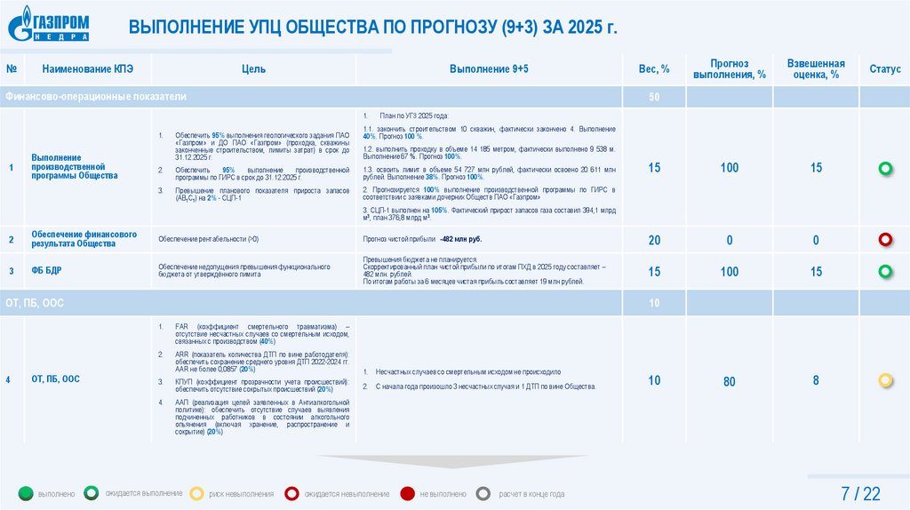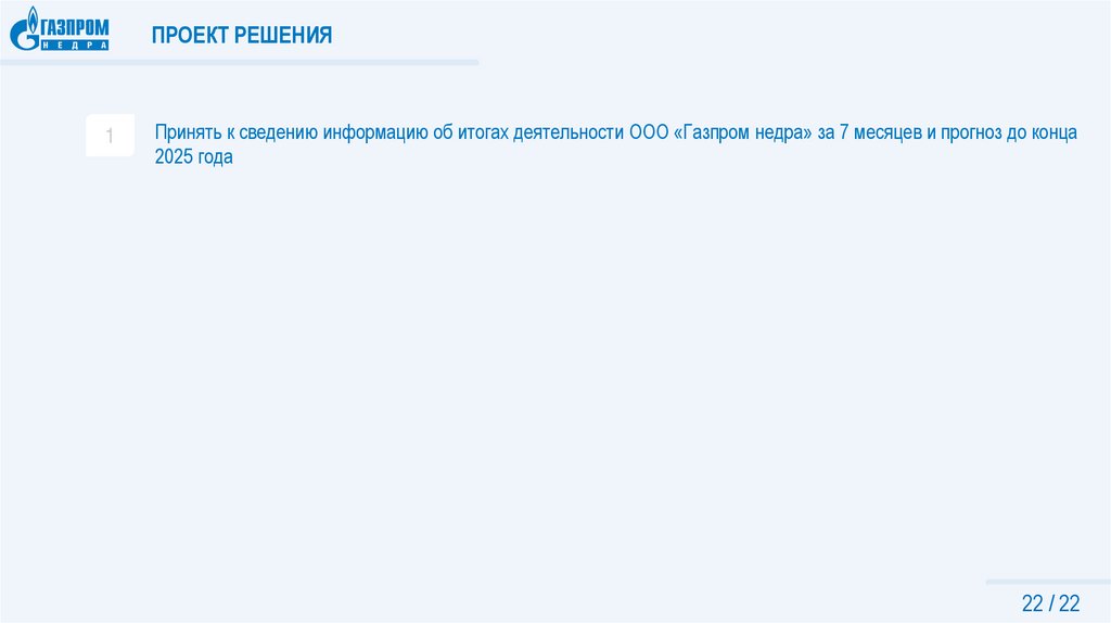 Принять к сведению информацию об итогах деятельности ООО «Газпром недра» за 7 месяцев и прогноз до конца