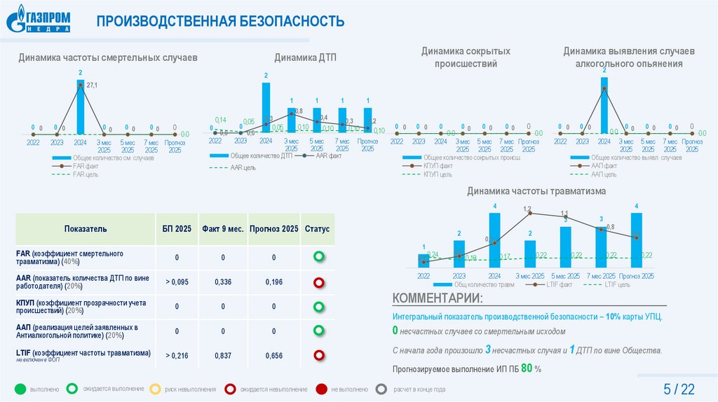ПРОИЗВОДСТВЕННАЯ БЕЗОПАСНОСТЬДинамика частоты смертельных случаев
