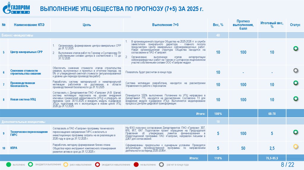 ДОСТИЖЕНИЕ СТРАТЕГИЧЕСКИХ ЦЕЛЕЙСтатус