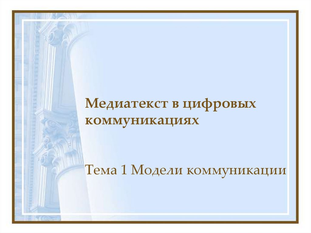 1. Медиатекст в цифровых коммуникациях Тема 1 Модели коммуникации