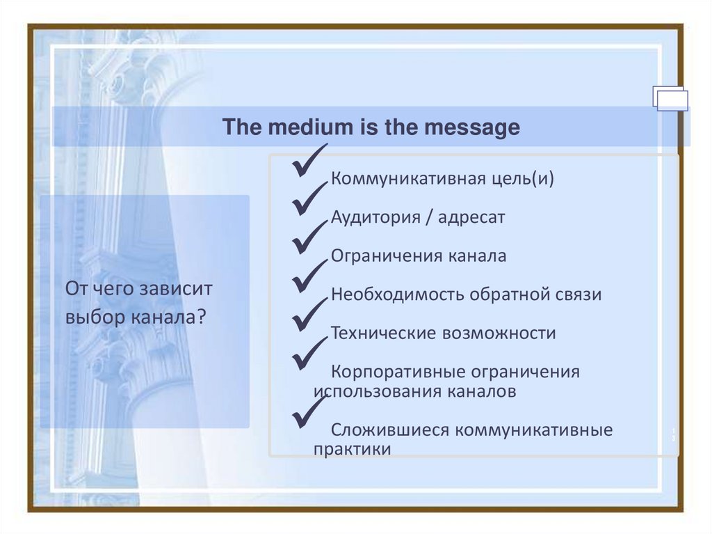 приемлемых средств коммуникации и их специфик.