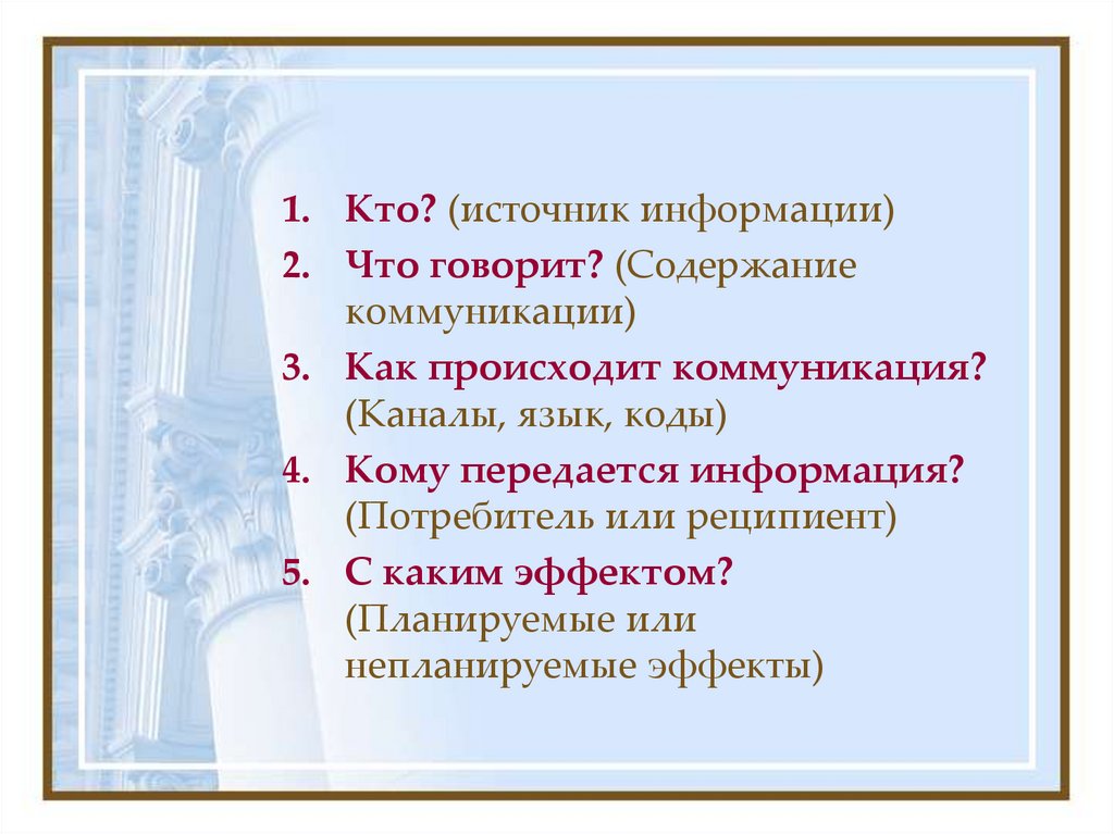 • Модель (формула) Г. Лассуэла
