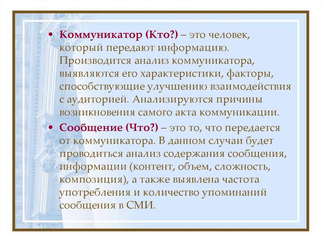 проводиться анализ содержания сообщения,
