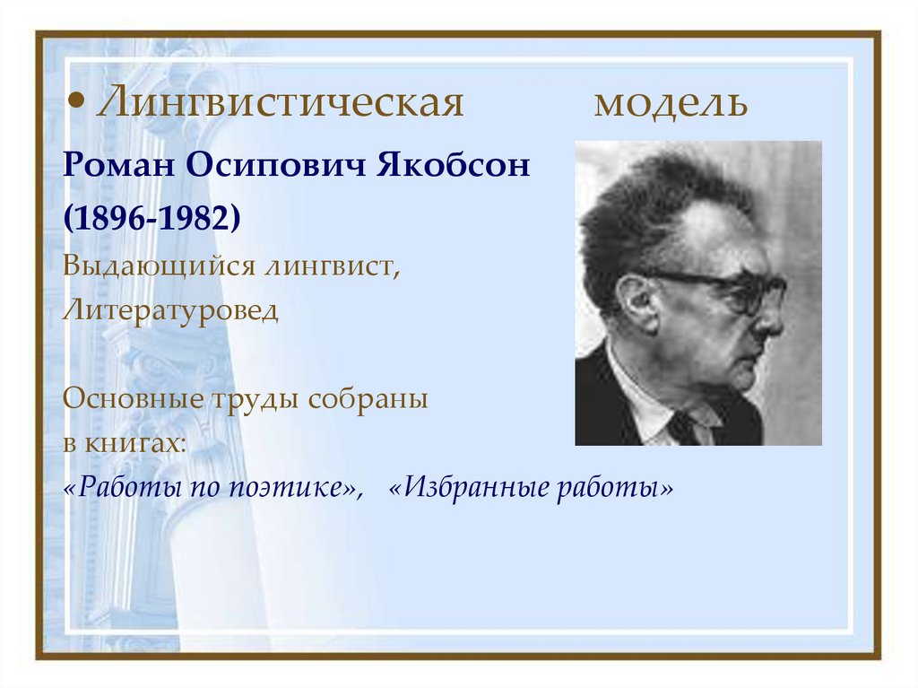 • Философская модель М. М. Бахтина• Лингвистическая модель Р.О. Якобсона