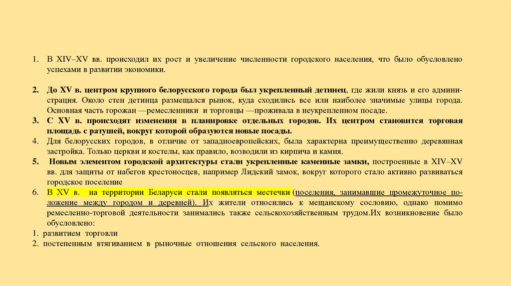 1. В XIV–XV вв. происходил их рост и увеличение численности городского населения, что было обусловленоуспехами в развитии экономики.