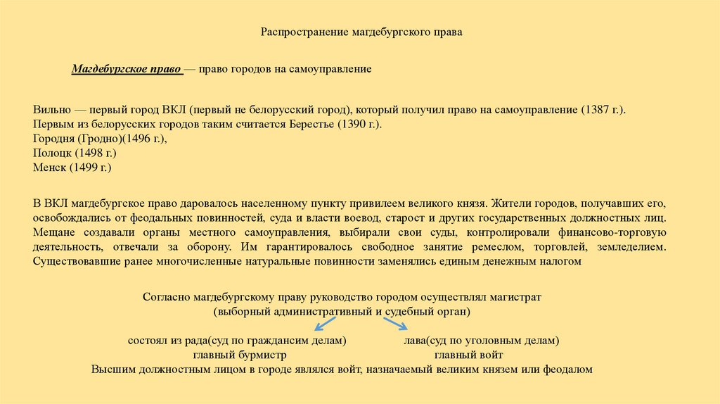 Распространение магдебургского праваМагдебургское право — право городов на самоуправление