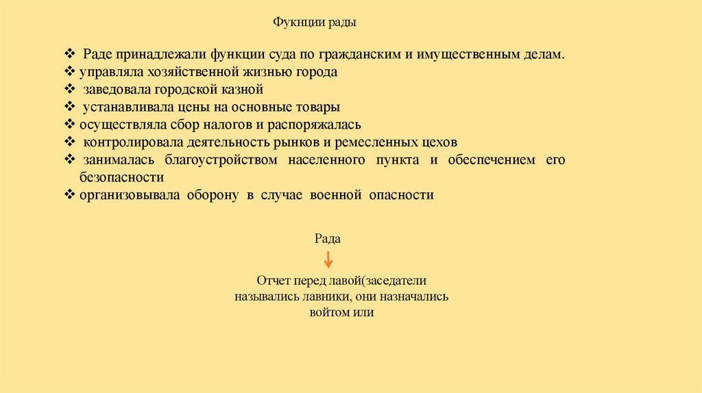 Фукнции радыРаде принадлежали функции суда по гражданским и имущественным делам.