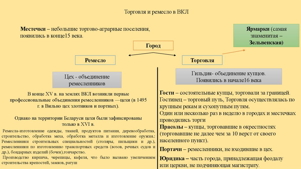 Торговля и ремесло в ВКЛМестечки – небольшие торгово-аграрные поселения,