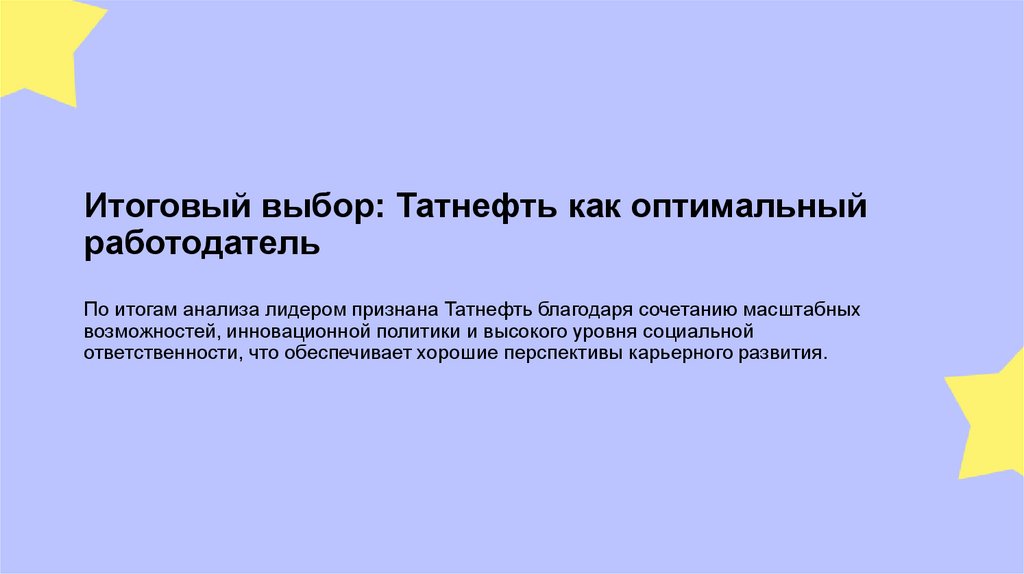 Итоговый выбор: Татнефть как оптимальныйработодатель