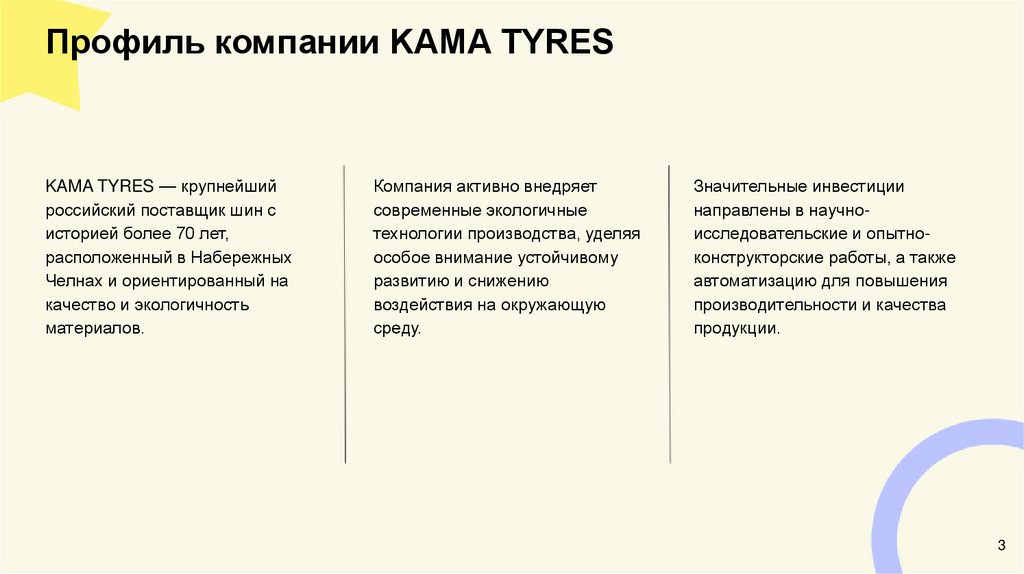 Профиль компании KAMA TYRESKAMA TYRES — крупнейший