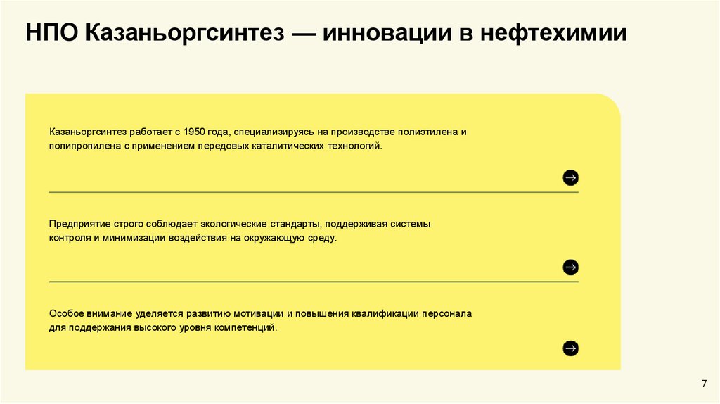 НПО Казаньоргсинтез — инновации в нефтехимииКазаньоргсинтез работает с 1950 года, специализируясь на производстве полиэтилена и