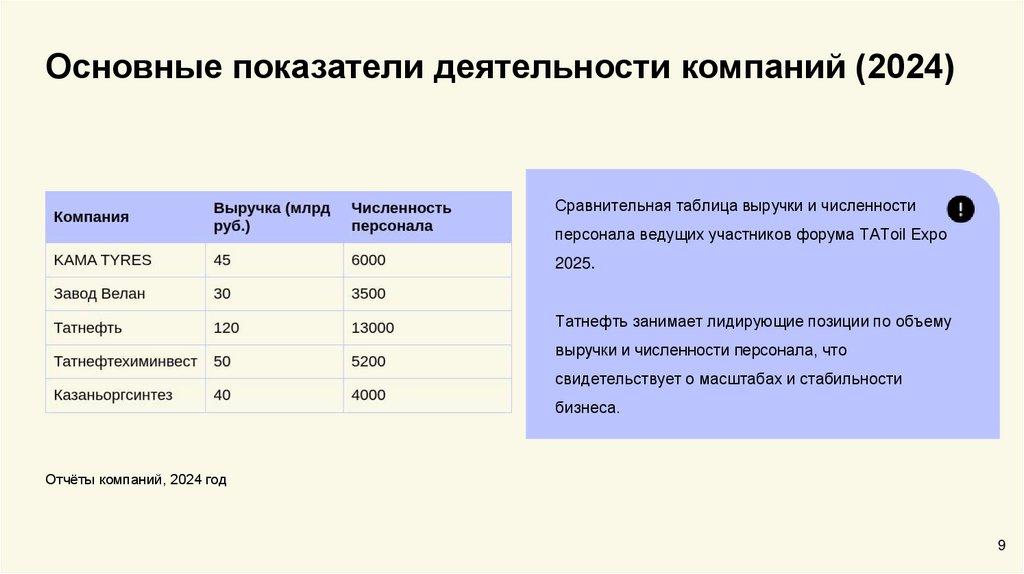 Основные показатели деятельности компаний (2024)Сравнительная таблица выручки и численности