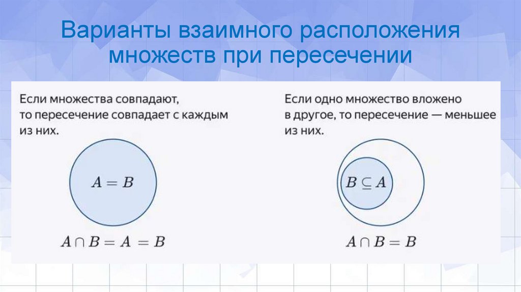 Операции над множествами_ объединение, пересечение, дополнение. _ (8 класс)