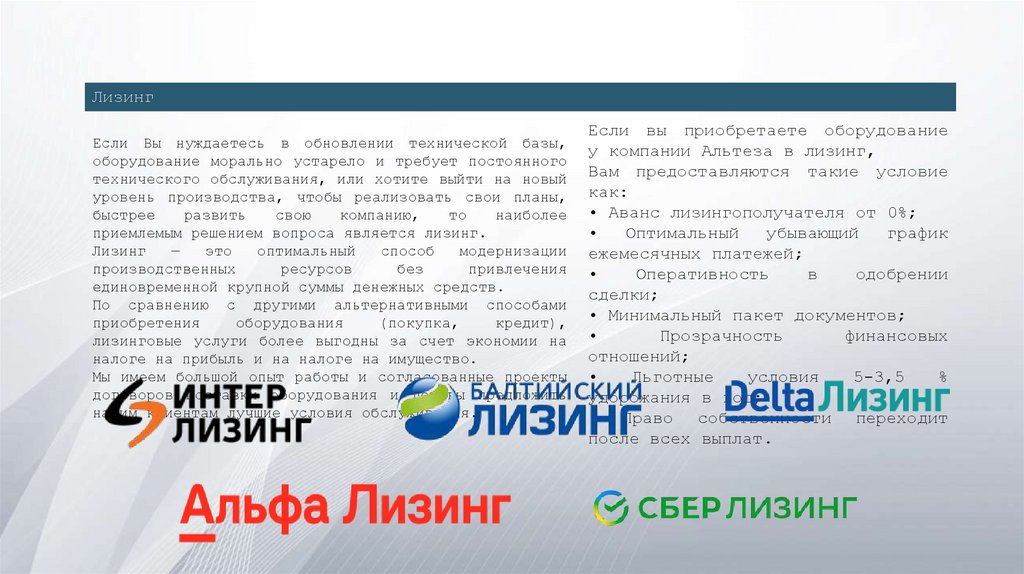ЛизингЕсли Вы нуждаетесь в обновлении технической базы,