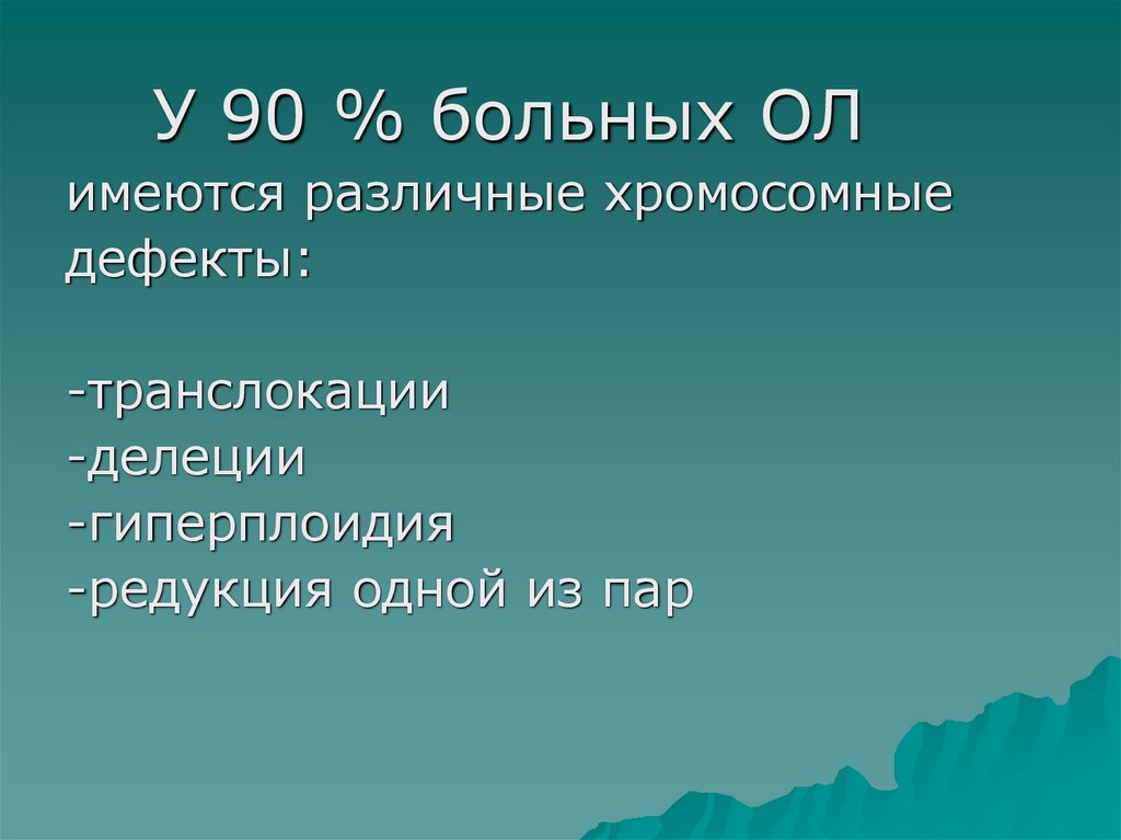 У 90 % больных ОЛимеются различные хромосомные