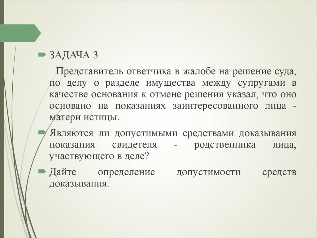 ЗАДАЧА 3Представитель ответчика в жалобе на решение суда,