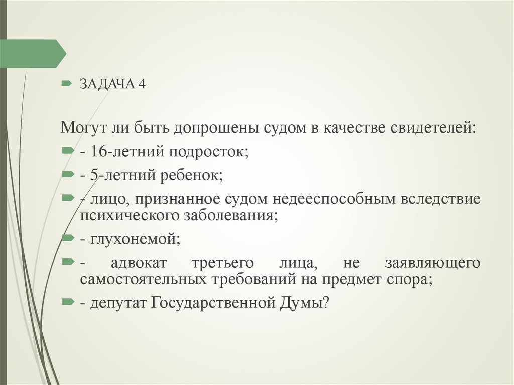 ЗАДАЧА 4Могут ли быть допрошены судом в качестве свидетелей: