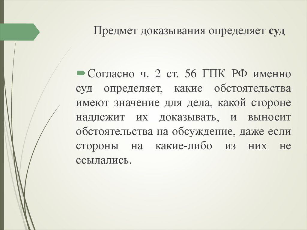 Предмет доказывания определяет судСогласно ч. 2 ст. 56 ГПК РФ именно
