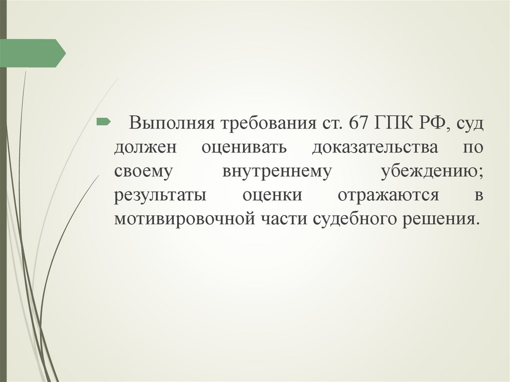 Выполняя требования ст. 67 ГПК РФ, суддолжен оценивать доказательства по