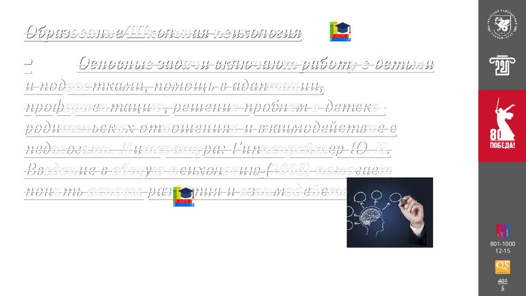 Образование/Школьная психологияОсновные задачи включают работу с детьми