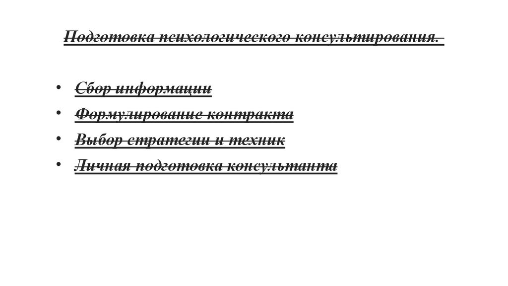 Подготовка психологического консультирования.• Сбор информации