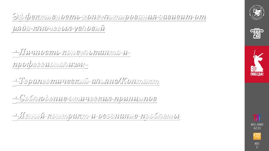 Эффективность консультирования зависит отряда ключевых условий