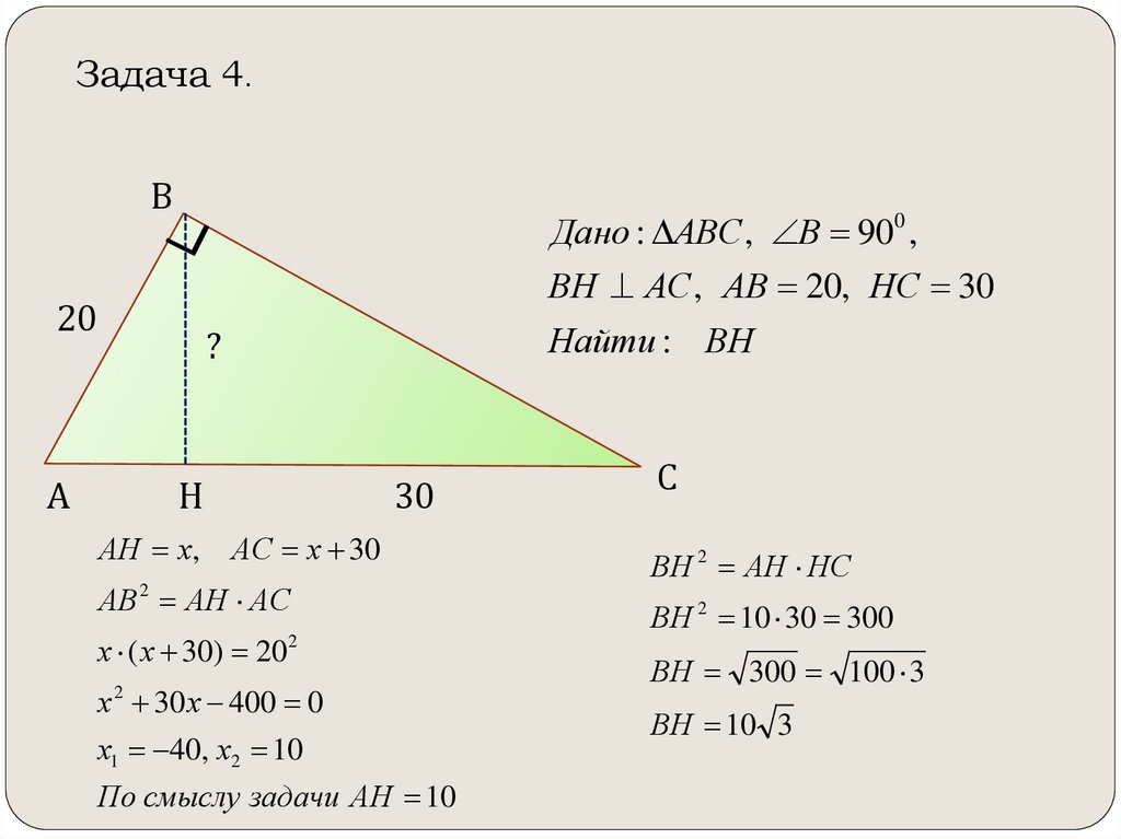 ВН АС , АВ 20, НС 30