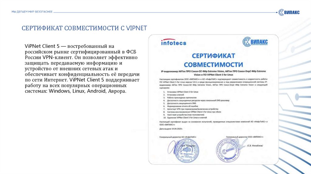 отечественного ПО и сертифицирована ФСТЭК России, Минобороны и ФСБ.