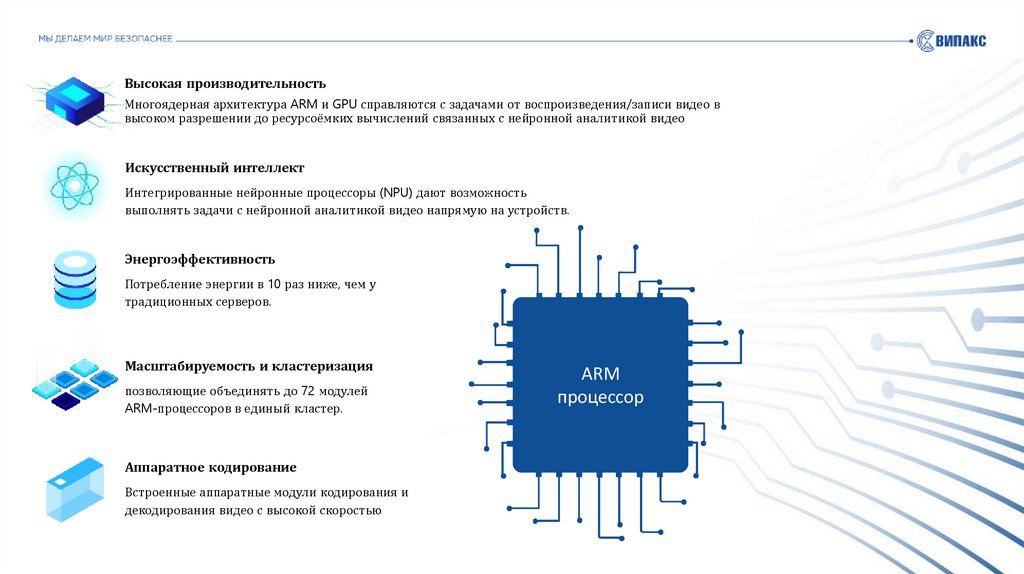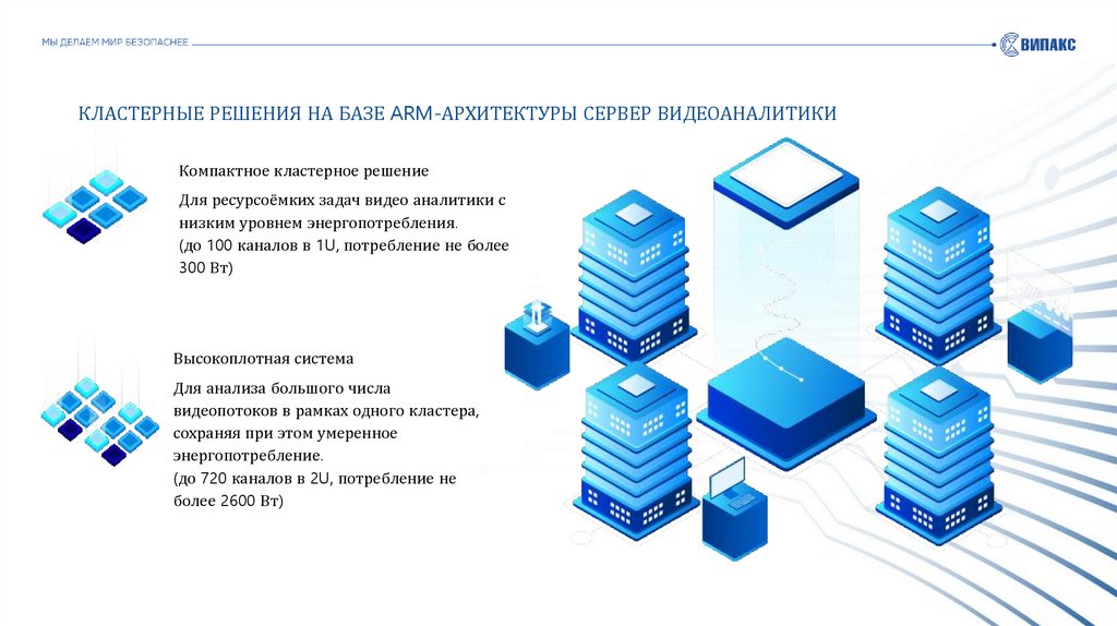• Кластерные решения на базе ARM-архитектурыКЛАСТЕРНЫЕ РЕШЕНИЯ НА БАЗЕ ARM-АРХИТЕКТУРЫ СЕРВЕР ВИДЕОАНАЛИТИКИ