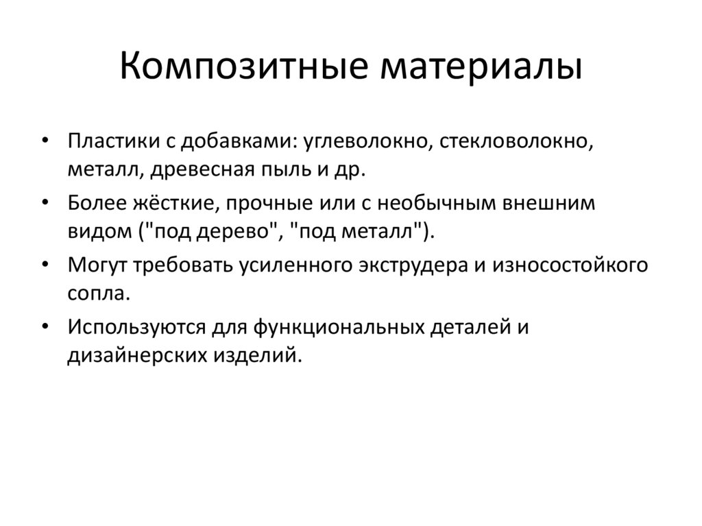 Композитные материалы• Пластики с добавками: углеволокно, стекловолокно,