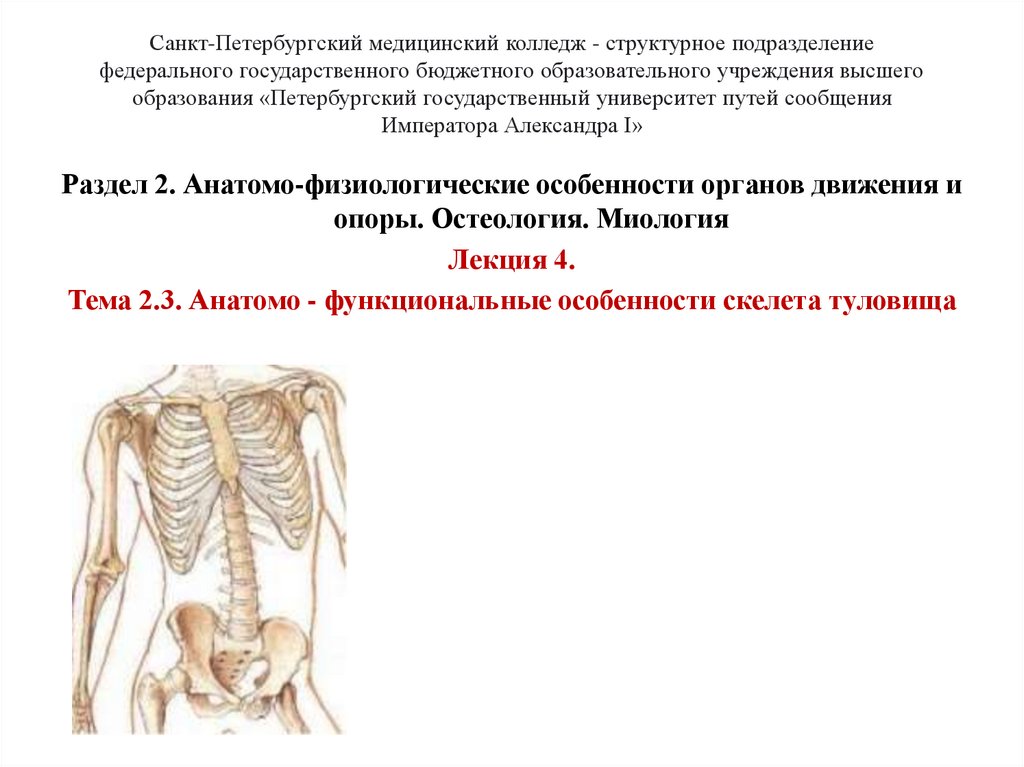 Тема 2.3. Анатомо - функциональные особенности скелета туловища