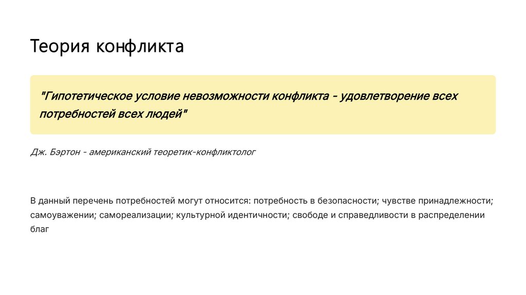 Теория конфликта"Гипотетическое условие невозможности конфликта - удовлетворение всех