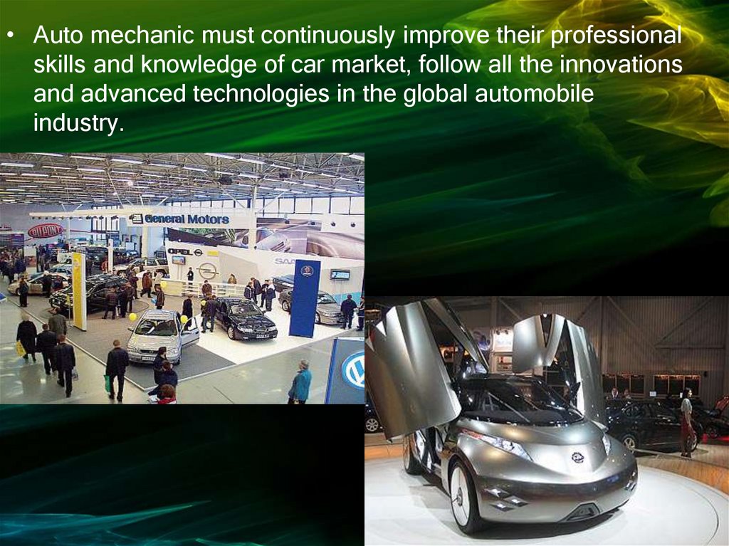 • Auto mechanic must continuously improve their professionalskills and knowledge of car market, follow all the innovations