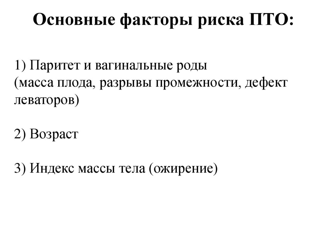 Основные факторы риска ПТО:1) Паритет и вагинальные роды
