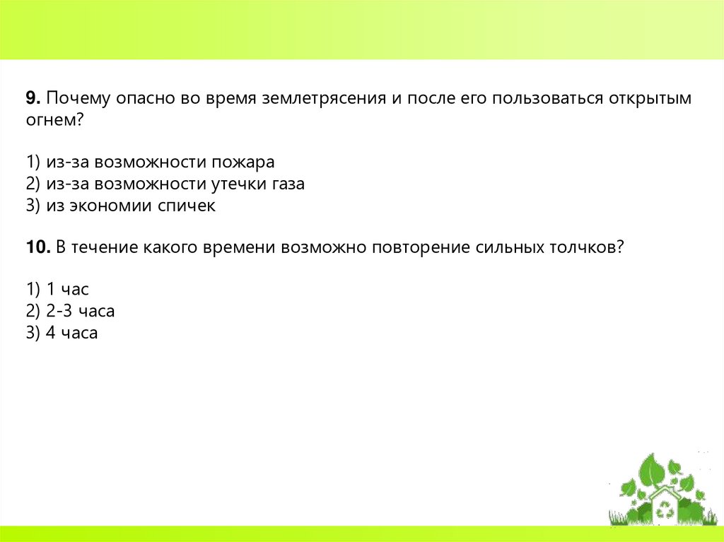 9. Почему опасно во время землетрясения и после его пользоваться открытымогнем?