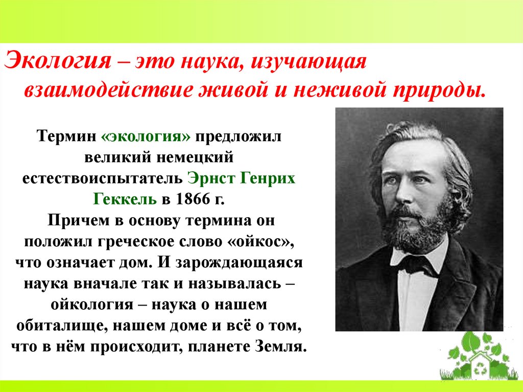 Экология – это наука, изучающаявзаимодействие живой и неживой природы.