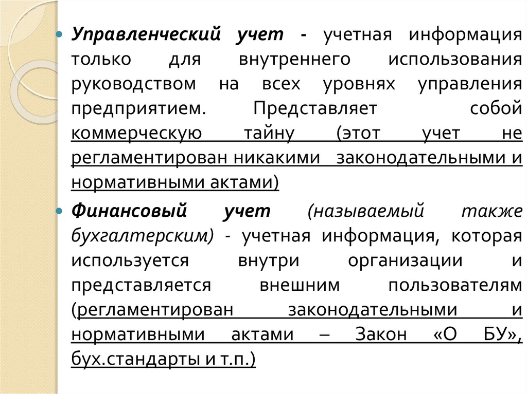 16. В учетной системе организации выделяют три подсистемы - финансовый (бухгалтерский), управленческий и налоговый учет. У каждой