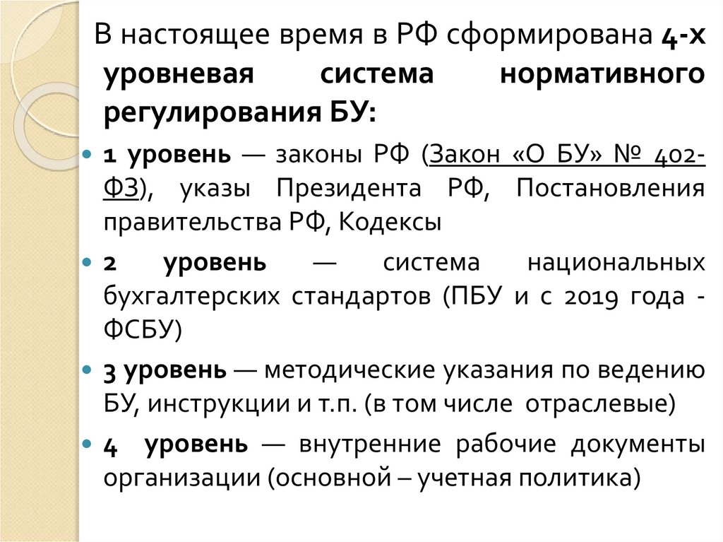 1 уровень — законы РФ (Закон «О БУ» № 402-