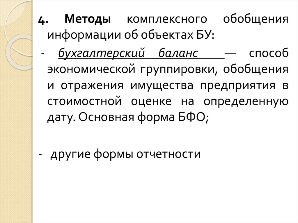 4. Методы комплексного обобщенияинформации об объектах БУ: