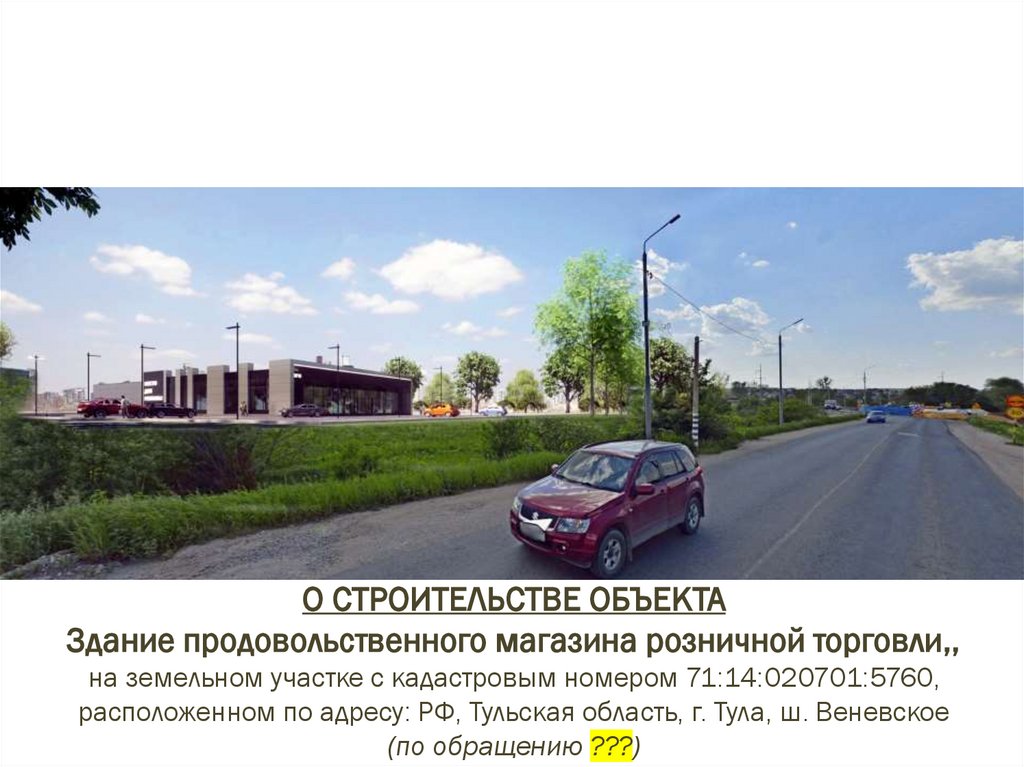 О СТРОИТЕЛЬСТВЕ ОБЪЕКТАЗдание продовольственного магазина розничной торговли,,