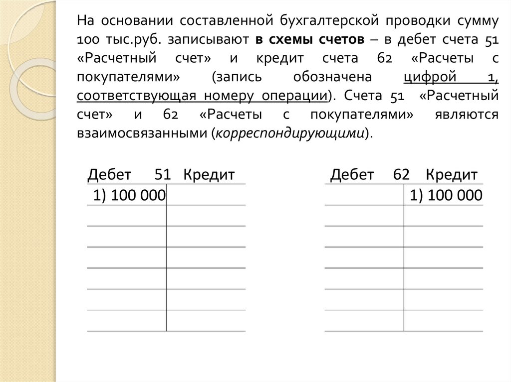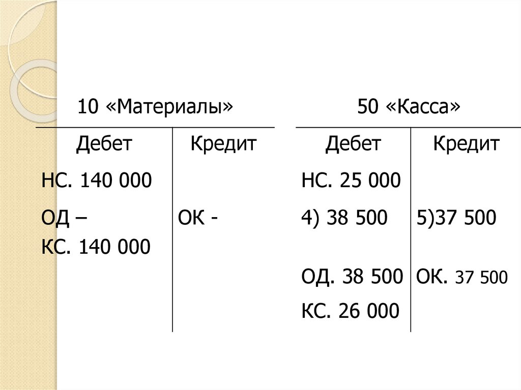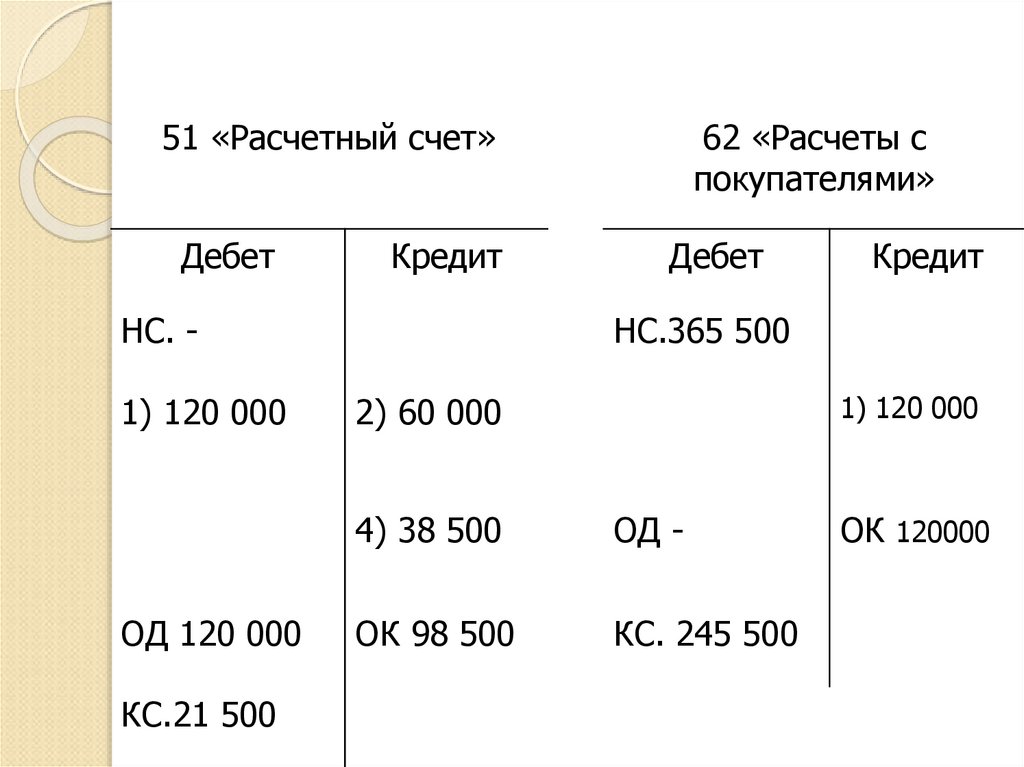 «Касса», 51 «Расчетный счет» и др.).