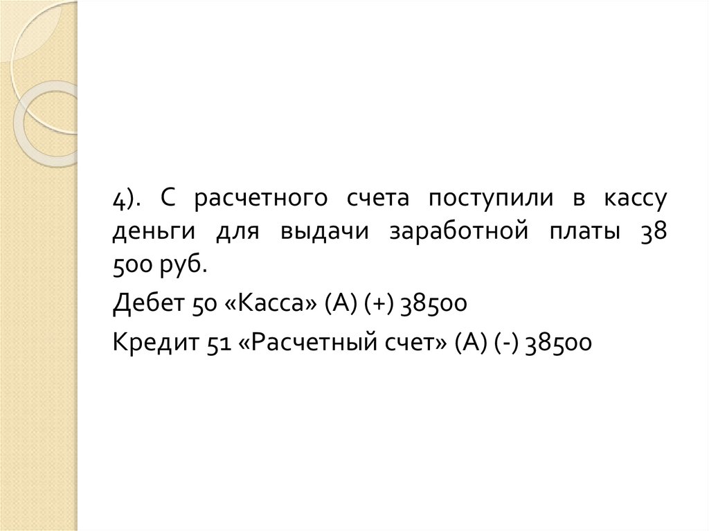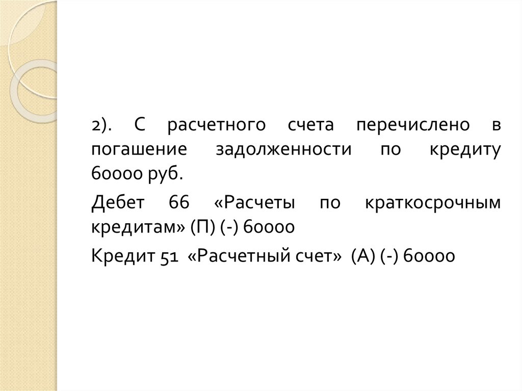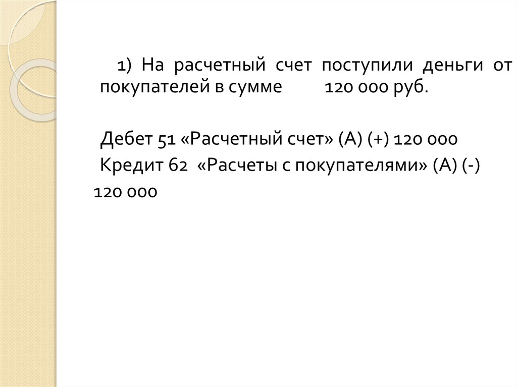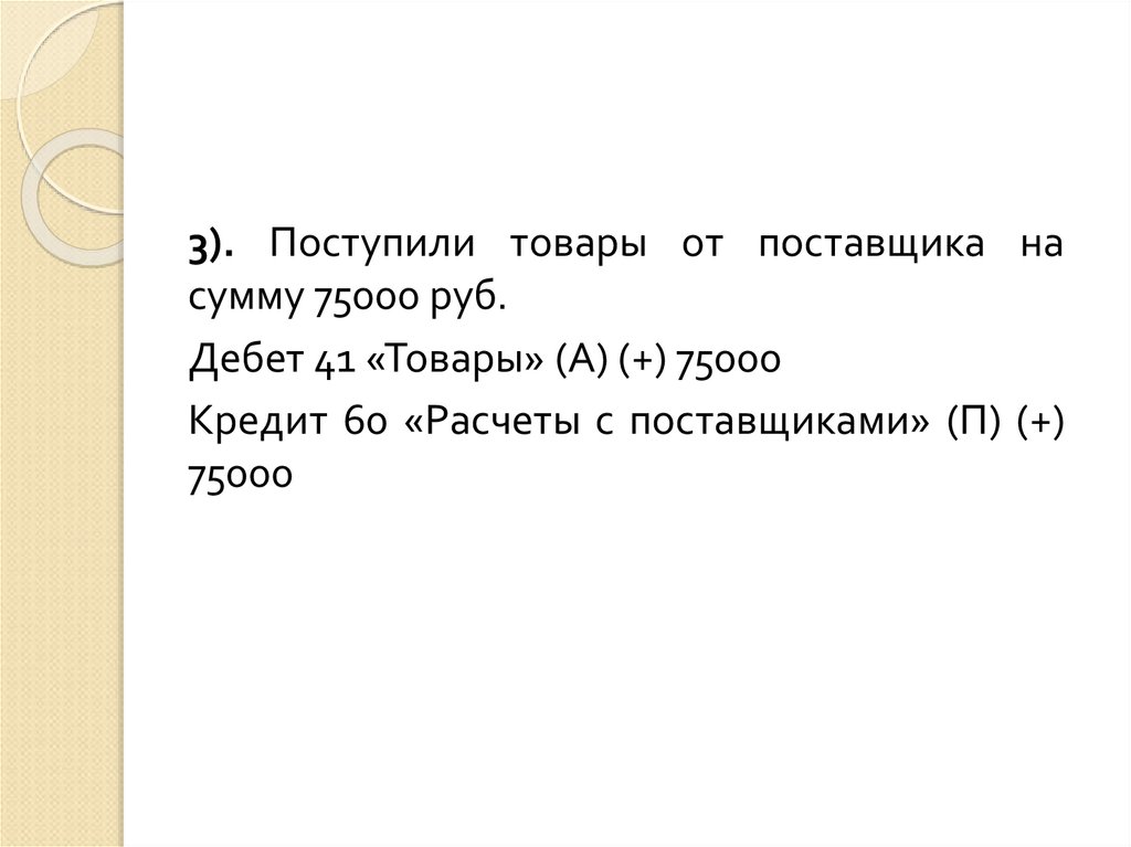 3) Д 60 (-) К 51 Расчетный счет (-) – 103 000