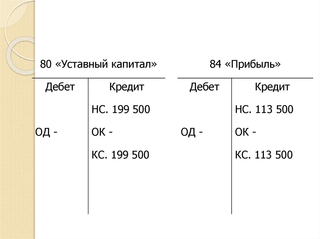открывают счет 80 «Уставный