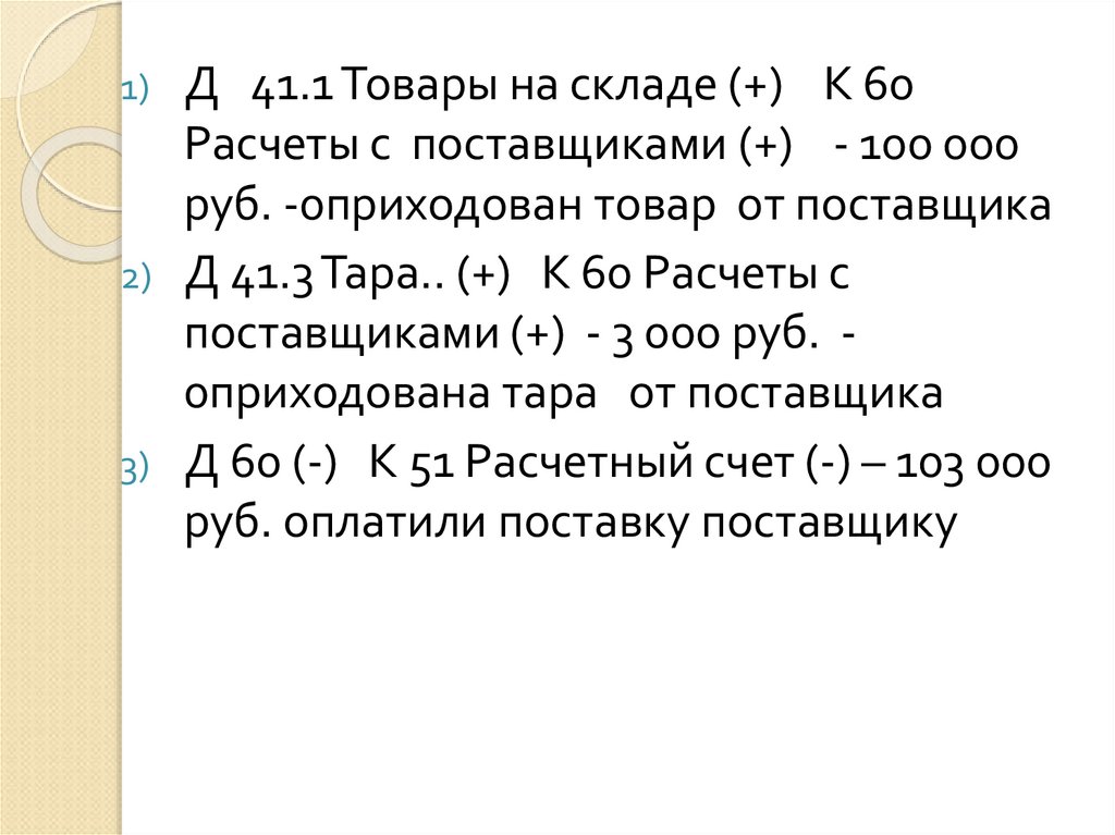 2) Д 41.3 Тара.. (+) К 60 Расчеты с
