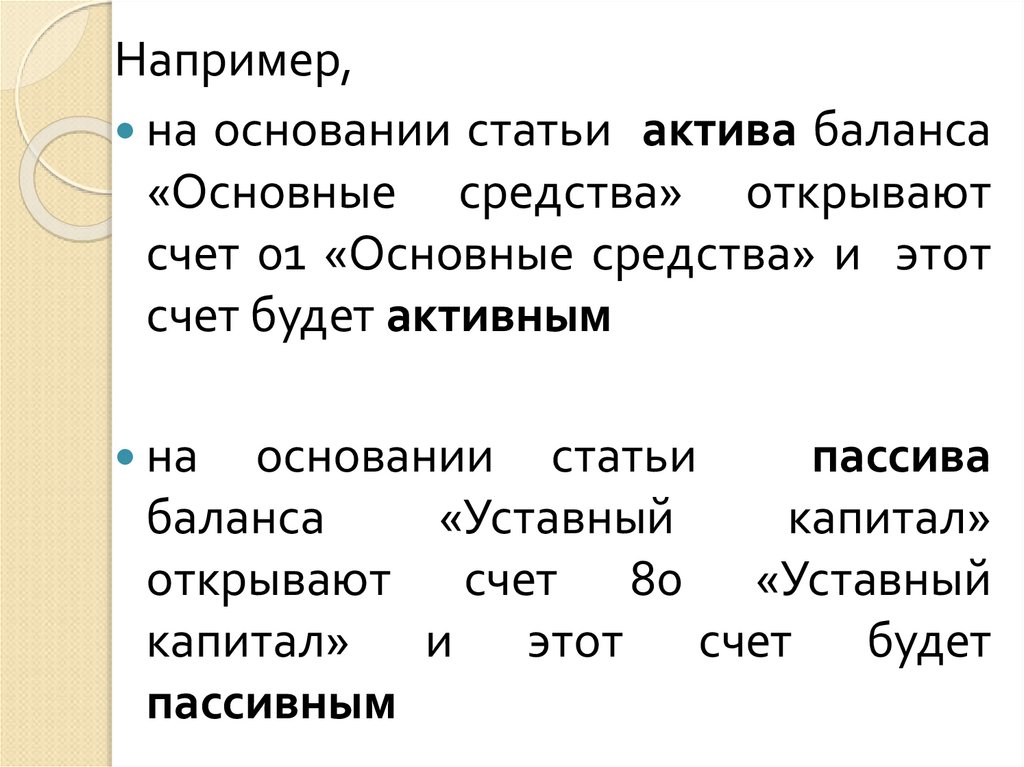 Например,на основании статьи актива баланса