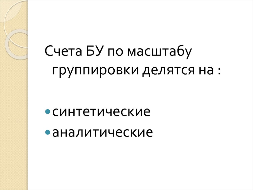 Счета БУ по масштабугруппировки делятся на :