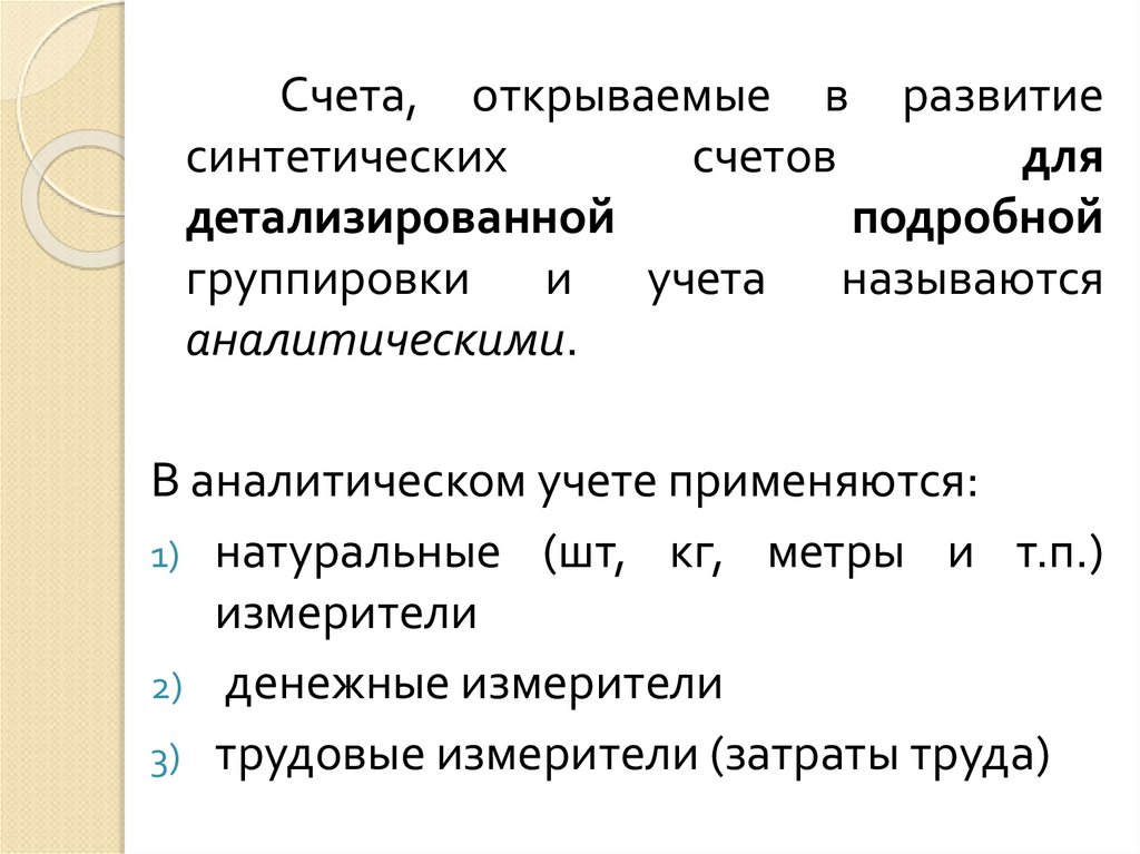 Счета, открываемые в развитиесинтетических