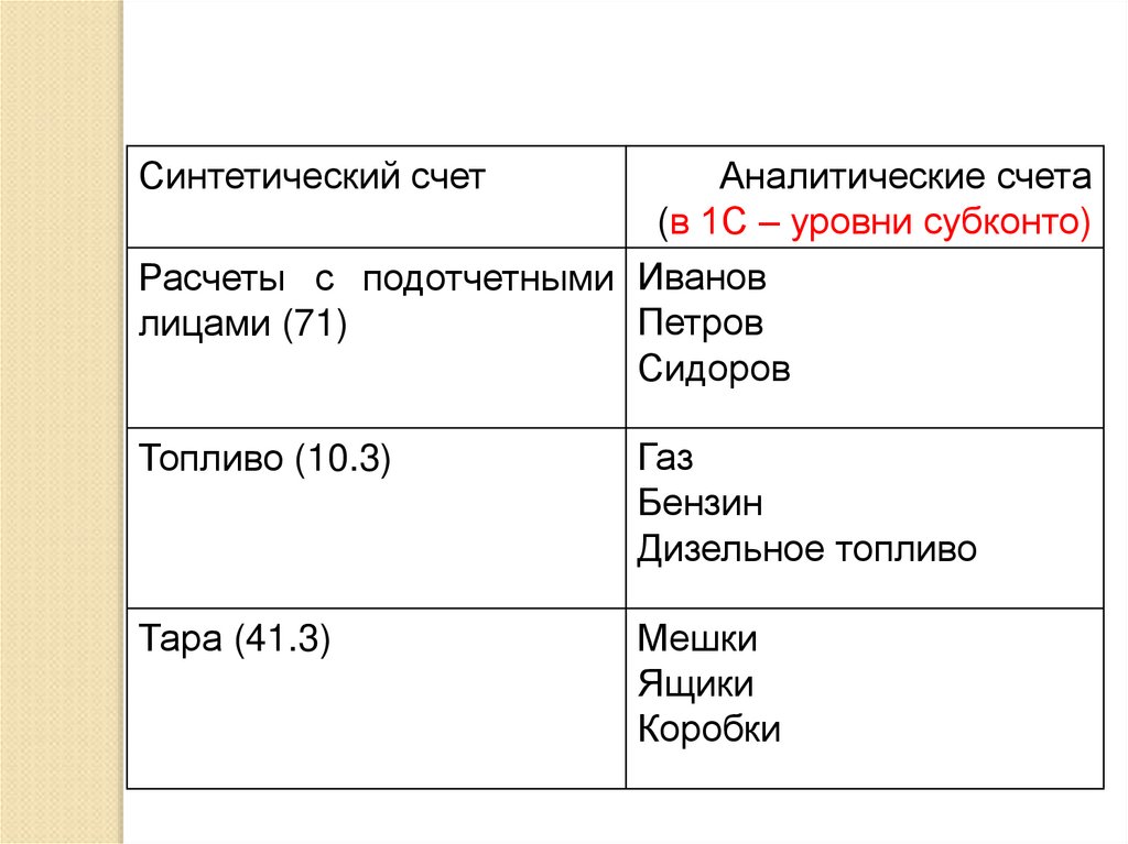 Синтетический счетАналитические счета
