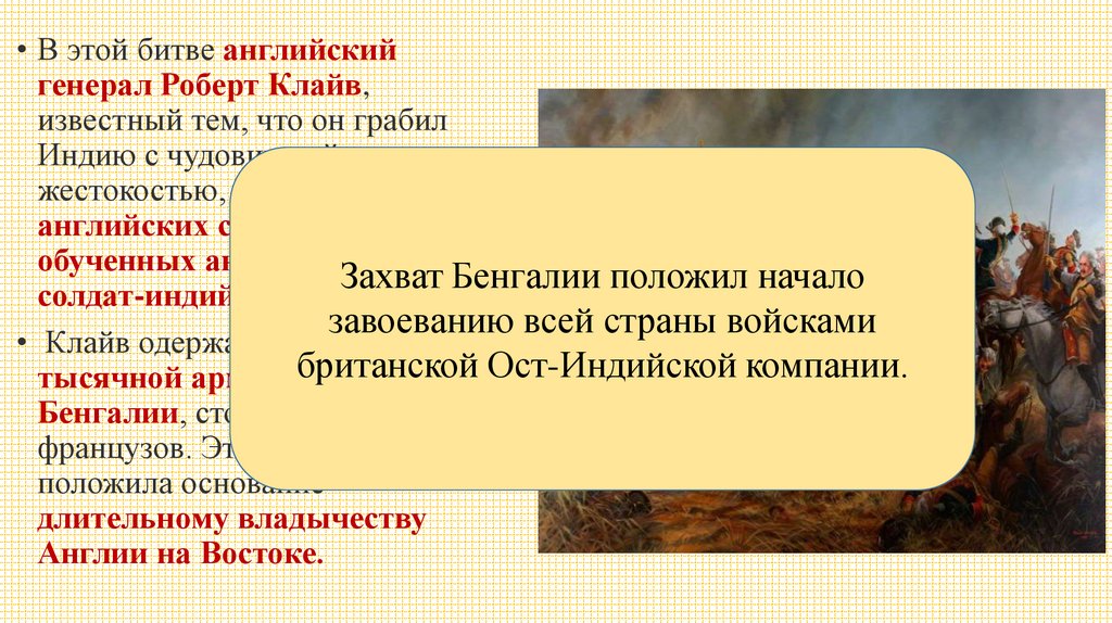 19. Эту борьбу они вели с помощью армий индийских княжеств. Поворотным моментом англо-французского соперничества в борьбе за