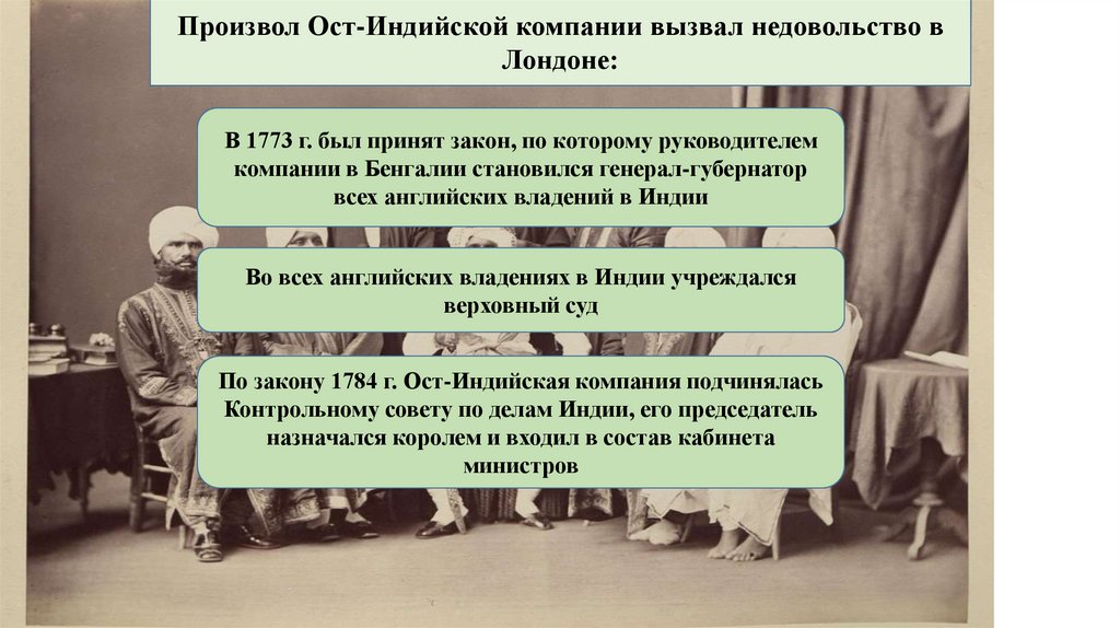 По закону 1784 г. Ост-Индийская компания подчинялась